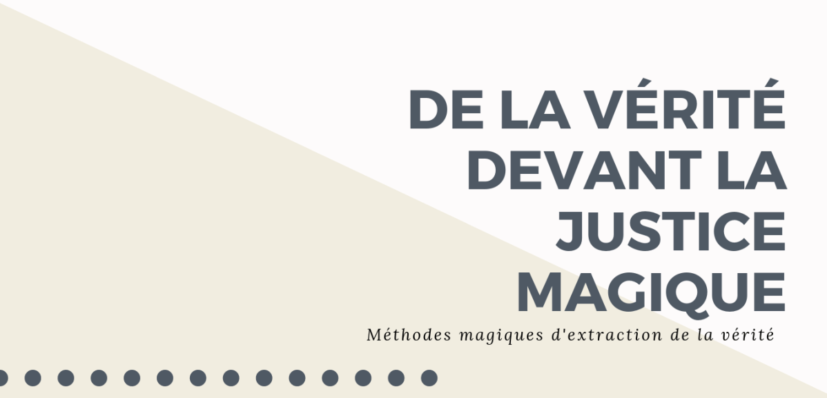 Nous parcourrons rapidement les différents moyens magiques les plus connus d’extraire la vérité de l’esprit d’autrui, et nous nous interrogerons sur leurs limites. Enfin, nous discuterons de leur opportunité.